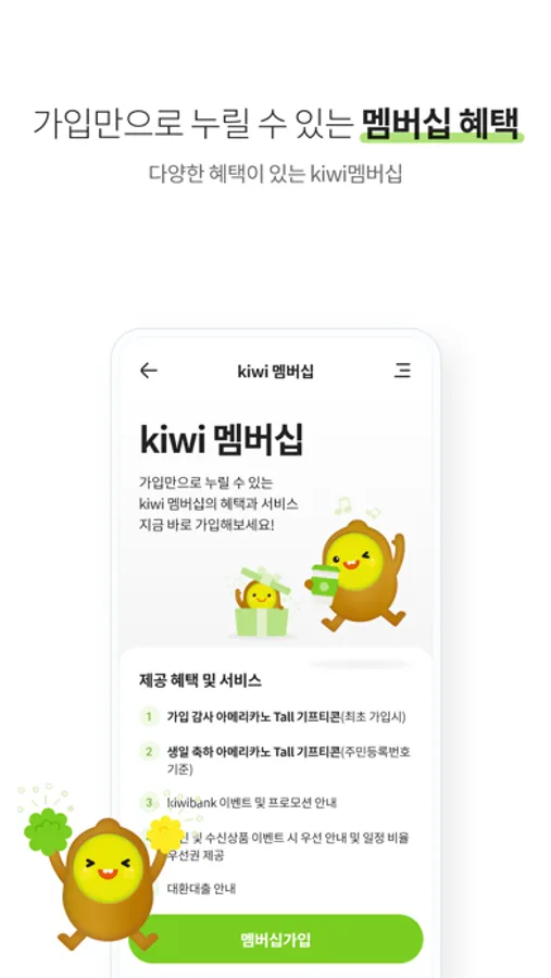 - 가입만으로 누릴 수 있는 kiwi멤버십의 다양한 혜택을 누려보세요.