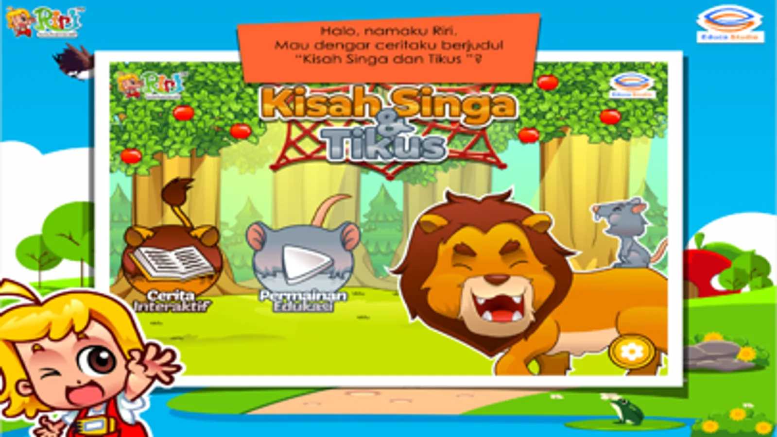 RIRI (Cerita Anak Interaktif & Game Edukasi) hadir dengan kisah baru : RIRI - KISAH SINGA DAN TIKUS.