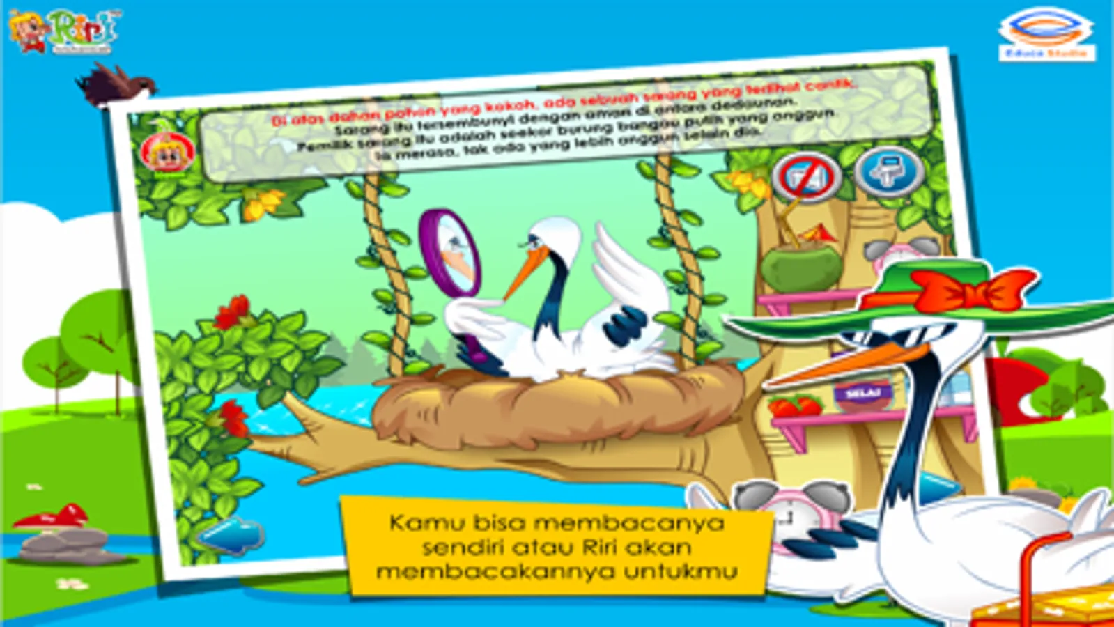 RIRI (Cerita Anak Interaktif) berusaha menghadirkan sebuah aplikasi buku cerita anak dan dongeng yang menarik dan interaktif. Dikemas menggunakan bahasa yang ringan, sehingga mudah dimengerti oleh anak-anak. Aplikasi ini dilengkapi dengan animasi, suara serta musik pendukung yang menjadikan lebih menarik.