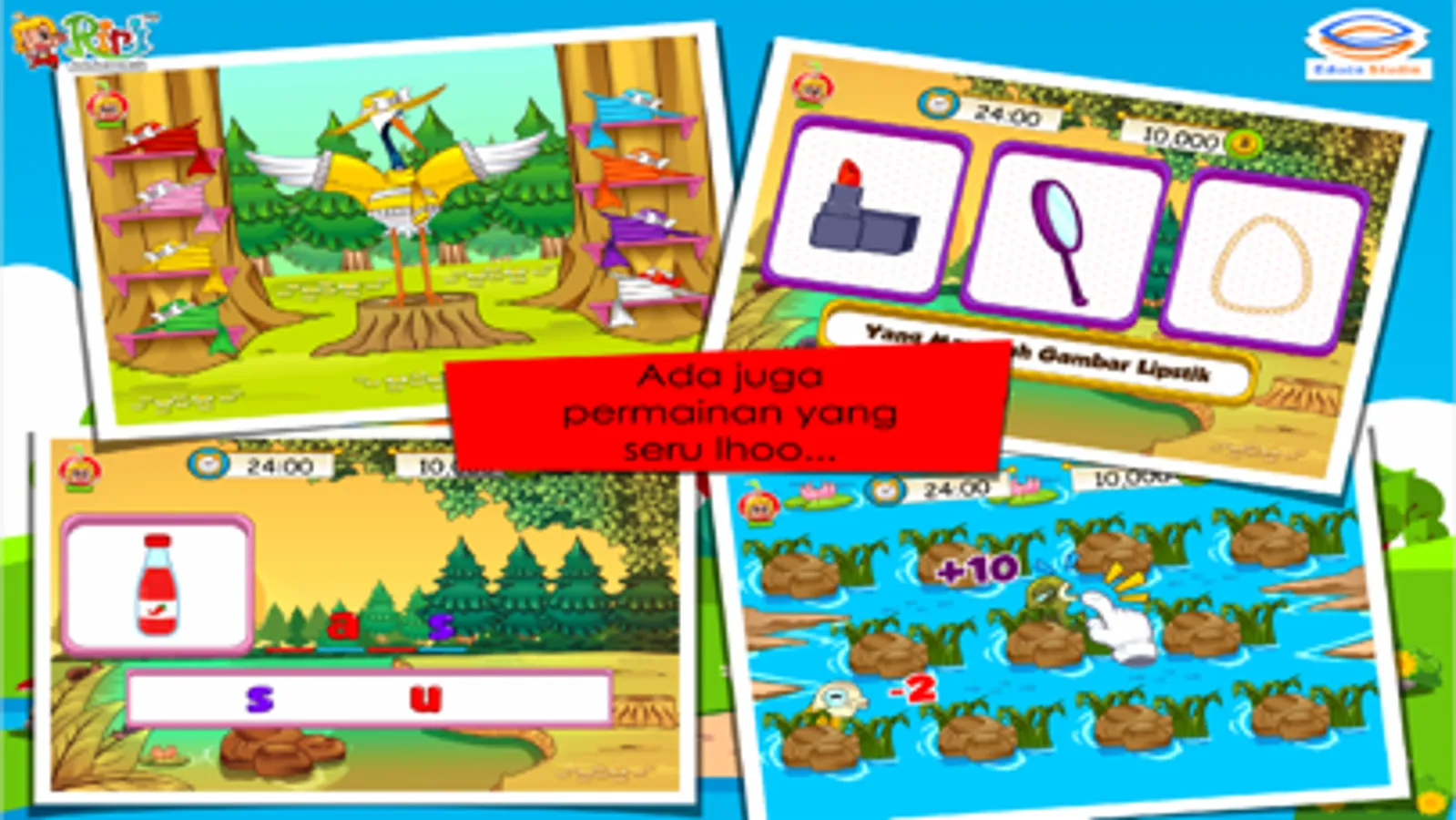 Tidak hanya ceritanya saja yang menarik, buku cerita anak interaktif ini juga dilengkapi dengan animasi yang sangat interaktif. Serta berbagai macam permainan edukasi yang sangat menarik untuk dimainkan. Baca ceritanya, nikmati animasinya dan mainkan serunya permainan edukasi! Hanya ada di Riri - Legenda Batu Menangis.