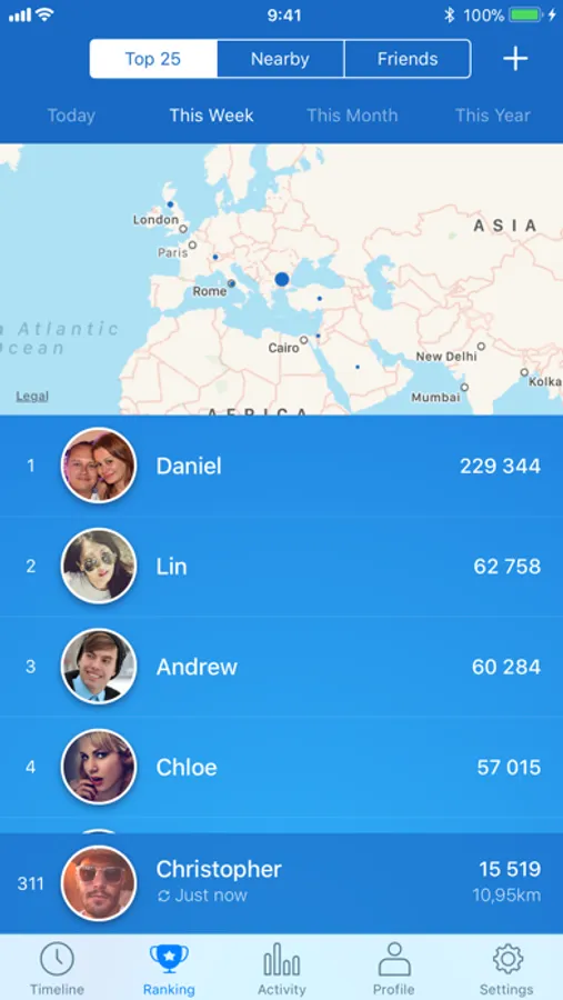 • Explore our Global & Regional Ranking to see people around you and all over the world.