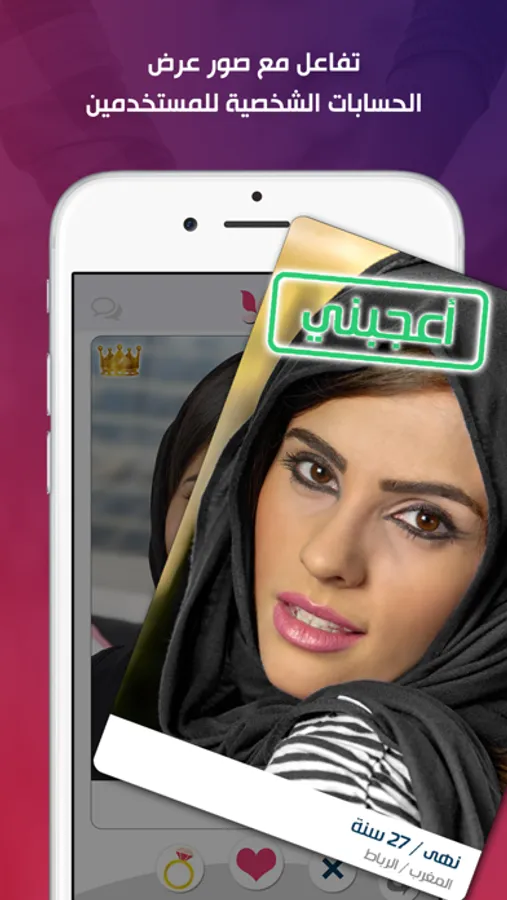 • إمكانية الاطلاع على: الاسم، الصور، الموقع، رسالة التعريف، والمواصفات في الملف الشخصي لكل مستخدم مُطابق (Match).