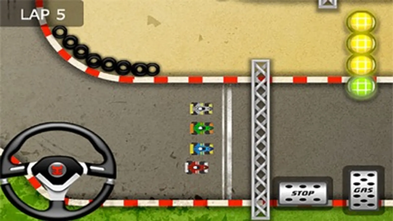 Car Race Circuit is a cool car racing simulator. The steering is simple and fun to use for all race liking players. Only tap the gas and brake buttons to control the speed of your red racing car. Track 2 uses a steering wheel and the other 3 tracks uses arrows to steer your car.