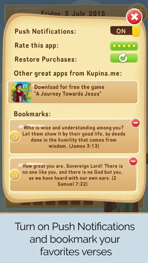 Thank you very much for reading ‘Daily Bible Verse’! If you liked this app, please, leave us a comment on the Store :)