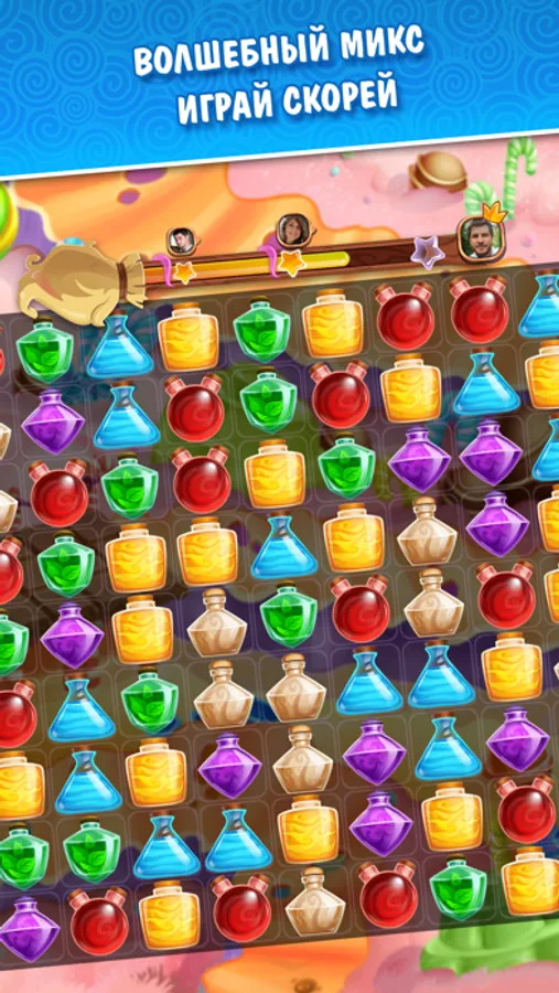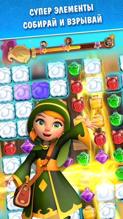 Сказочный домик ее родителей разрушила злая ведьма Вивьен де Легран. Но малышка не испугалась! Чтобы бороться с колдуньей, она приготовила тысячи сверкающих флакончиков, колбочек и фиалов с мощнейшими зельями. Собирай их по три в ряд и более, и сила древних стихий сокрушит злое колдовство, используй свитки суперзаклинаний, если станет трудно. А ещё тебя ждёт множество новых земель - восстанавливай разрушенные здания и шахты, накапливай ценные ресурсы и преображай магическую страну. И не забудь пригласить в путешествие своих друзей - и заводи новых, чтобы вместе победить зло.