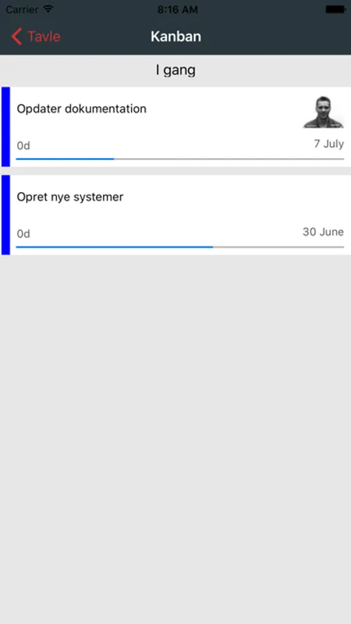 Kanban tavle og kort kan nu også oprettes og redigeres i app'en. Til sidst kan man se dagens begivenheder i app'ens kalender.