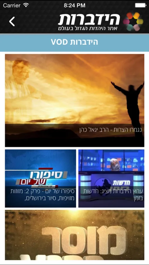 האפליקציה של אתר הידברות: כתבות מרתקות, מאגר VOD ענק וחינמי, תכני ילדים, ארכיון שו"ת ושידור חי של ערוץ הידברות. והכל בחינם לחלוטין!