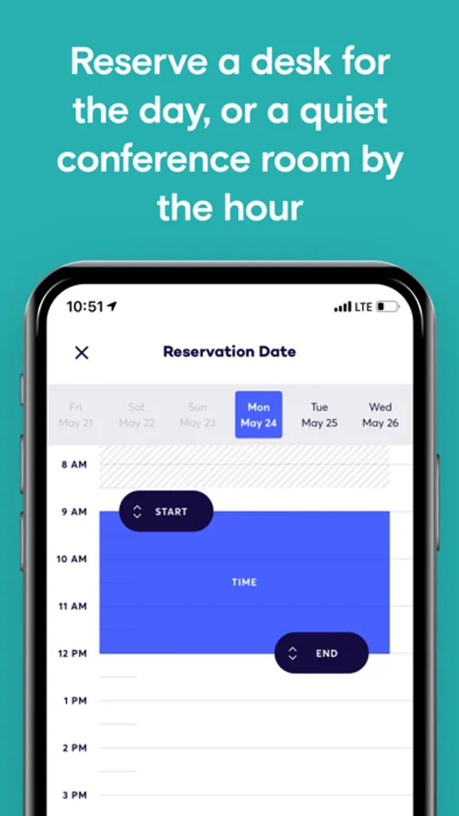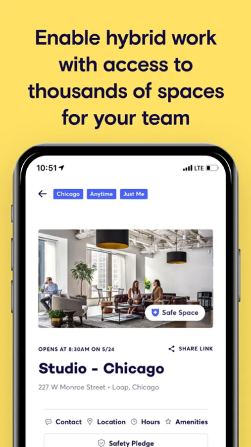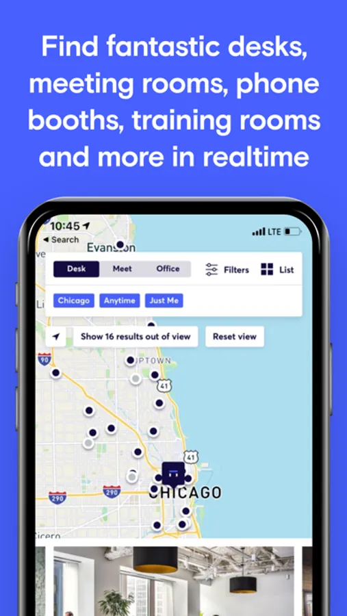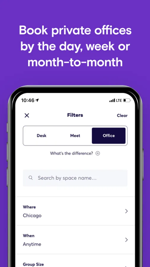 Members can work at the same space all month or someplace new every day, and book hourly desks, booths, team rooms, and conference rooms on demand.