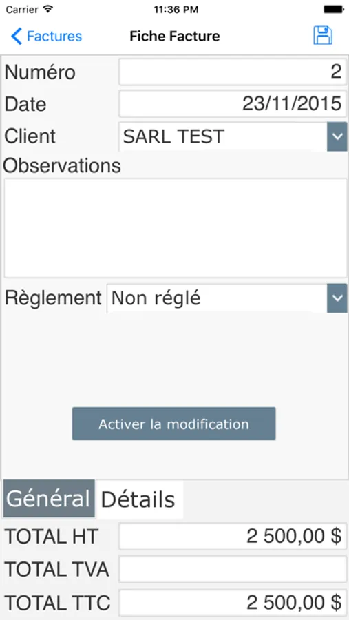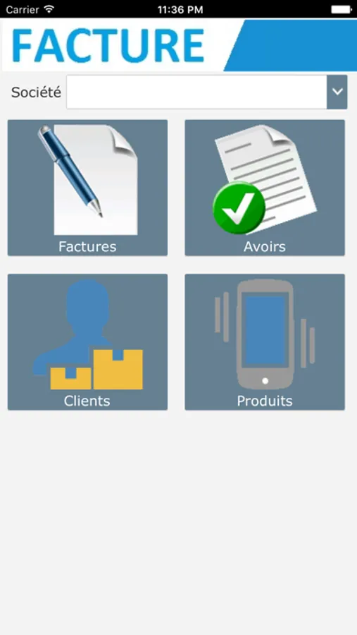 L'application permet de consulter/créer les factures, avoirs, produits et clients.
