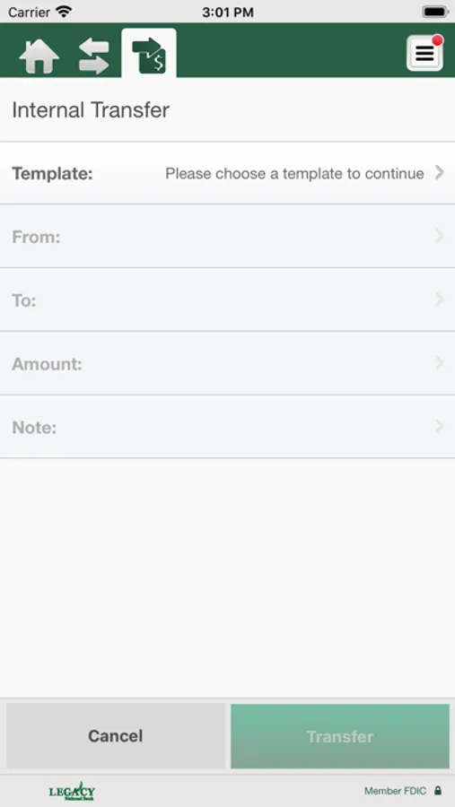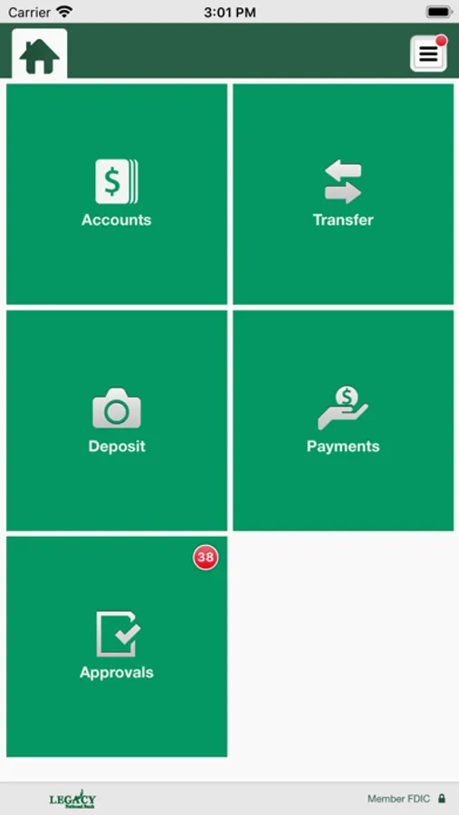 Getting started is easy. Simply download the app and sign on with your Business Online user credentials. [No additional fees apply.1]. For more information about Legacy National Bank mobile services, please call us at 479-717-1900.