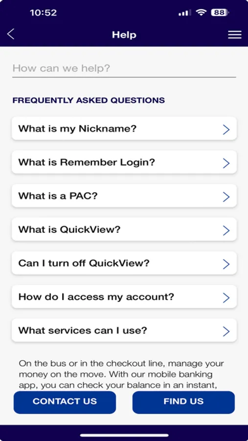 Location services – allows the app to use your device's GPS to find the nearest branch or ATM