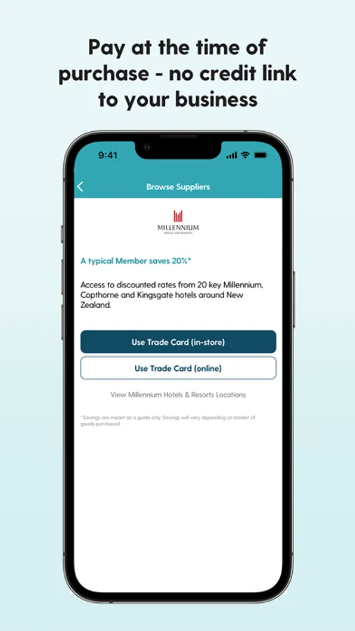 • Pay at the time of purchase – no credit link to your business