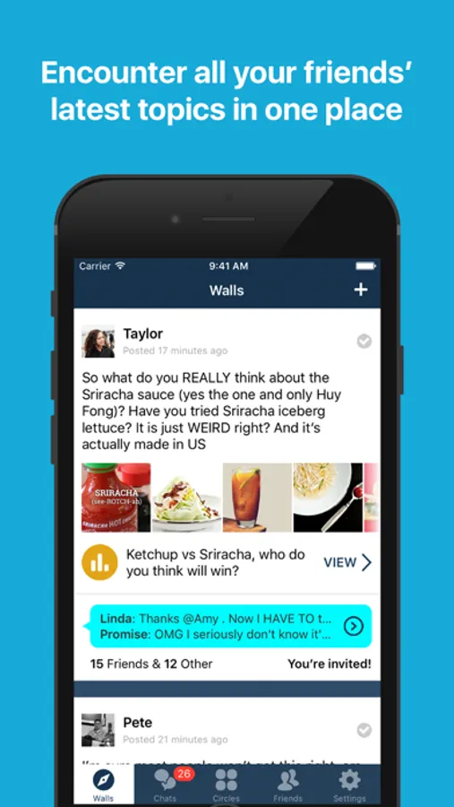 • Start a group chat with a post: write a few words, create a soul-searching poll, add some awesome pictures or videos, or slap on a couple of mind-blowing links (news or links not so new).