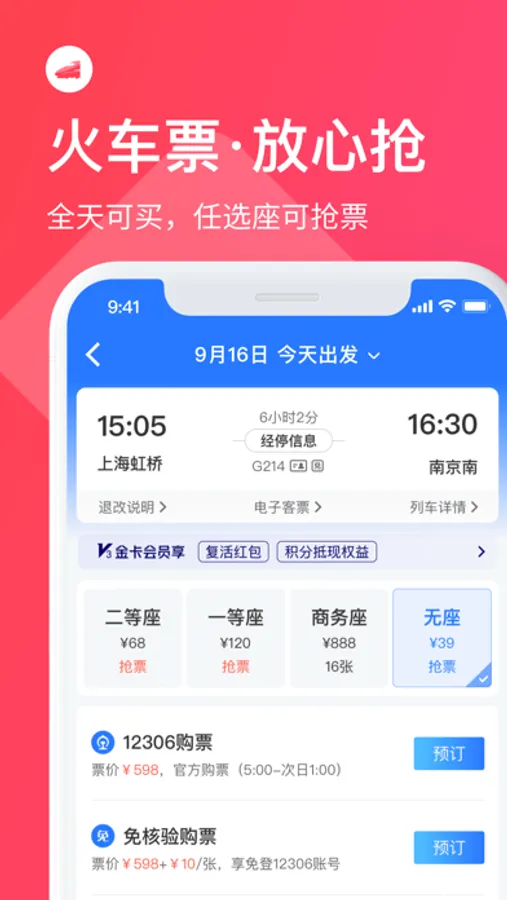 • 全新极速云抢票、上车补票,抢票快人一步;