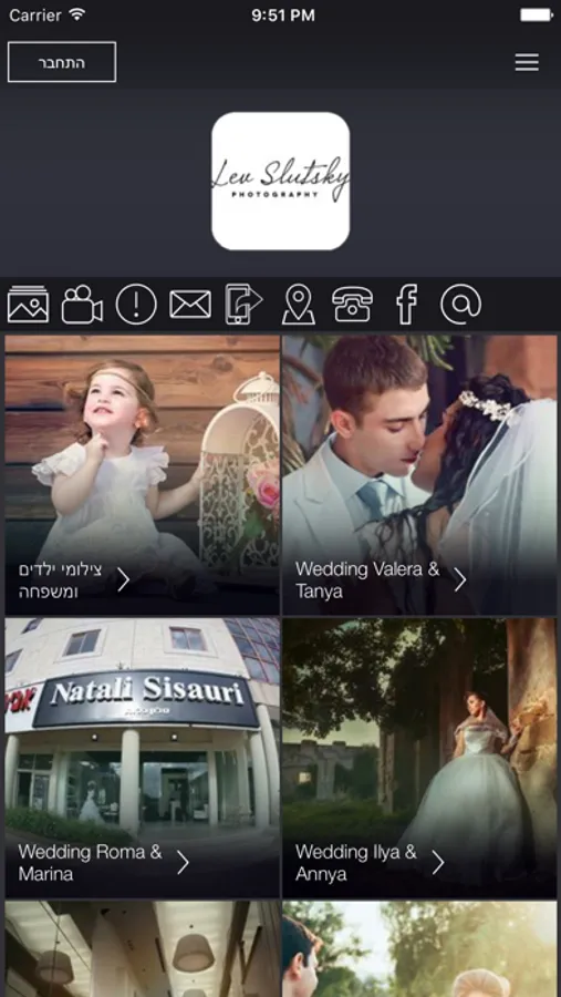 אפליקציית חתונה אישית של Lev Slutsky מאפשרת לכם לראות את התמונות והסרטים שלכם, הכל בתפריט פשוט ונוח, הראו לחבריכם את הקטעים המרגשים מהחתונה שלכם בצורה פשוטה ונוחה