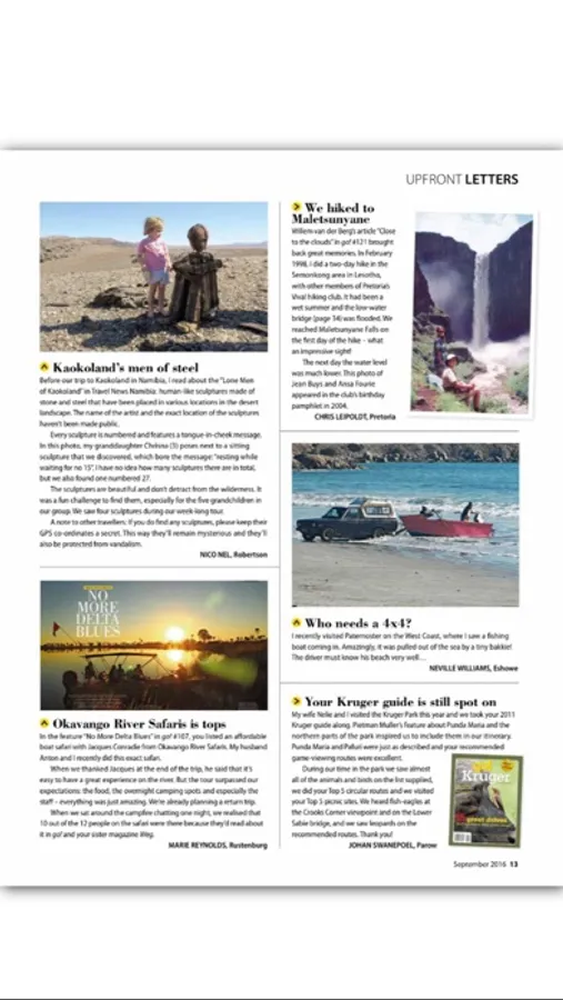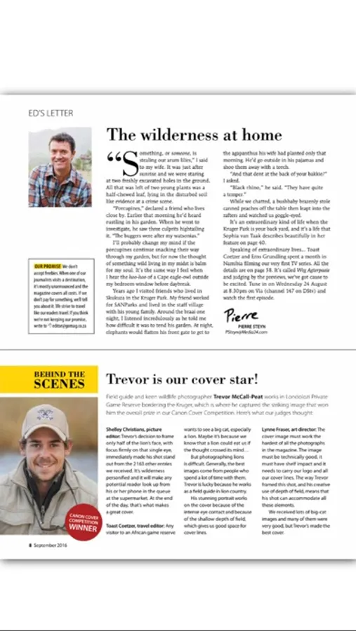 South Africa’s number one travel and outdoor lifestyle magazine. We pay our own way and tell it like it is. We drive back roads and speak to real people, giving you practical information about affordable destinations in southern Africa. Each issue is crammed with excellent photography, honest gear reviews and delicious recipes to make at home or in the bundu. Whether you’re looking to escape for a weekend or a month, your journey starts here.