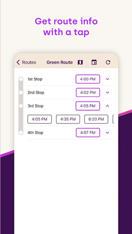 * Routes - view specific information on all routes available to you including route schedules, route maps, and stop-by-stop details so you can plan every trip ahead of time.