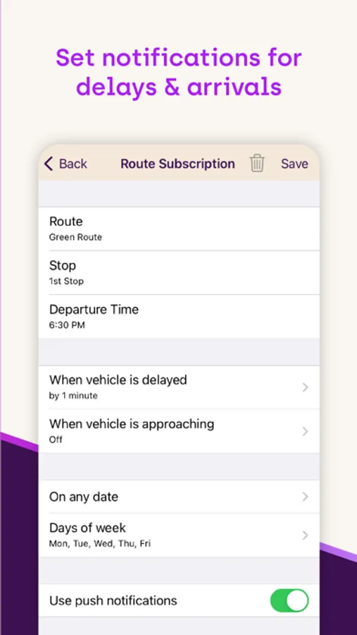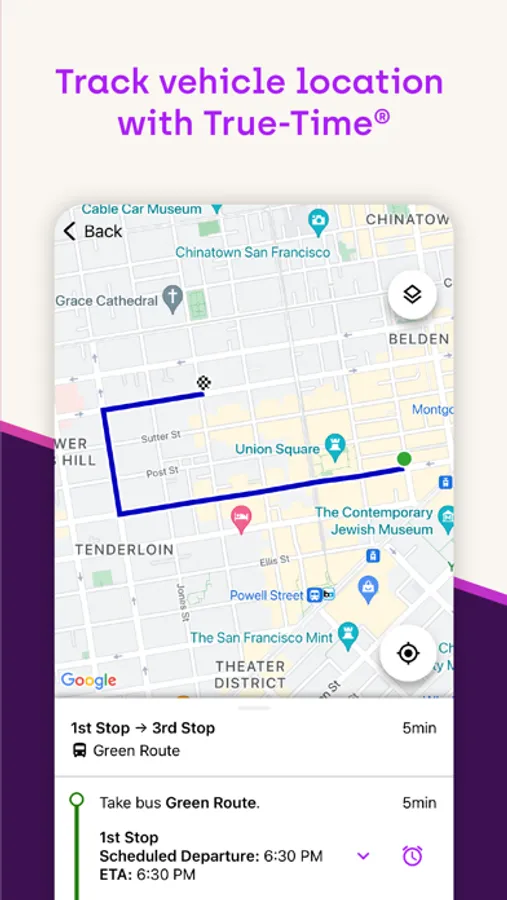 * Advanced Trip Planner - map out your journey from point A to B, know the route you’re going to take and see when you will arrive. Set notifications to routes or stops to get True-Time® arrival, departure and delay information sent to your device. Favorite a route to make it easy to find next time you travel.