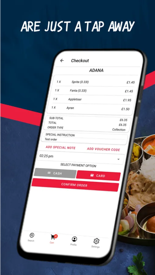 Add your delicacies to your cart, and select Collect or Takeaway — all from the comfort of your living room. Our app is designed for those of us who like the best quality food with the least effort. In all of the UK, there just isn’t a better takeaway ordering service!