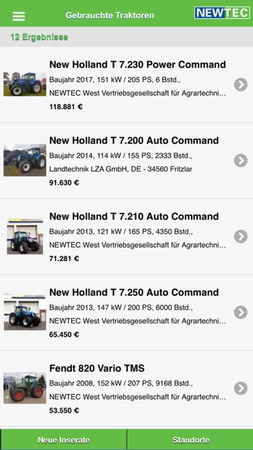 Die offizielle App der NewtecVertriebsgesellschaft für Agrartechnik GmbH bietet Ihnen aktuelle Gebrauchtmaschine aus der Landtechnik, sowie Informationen über die Standorte und Ansprechparter. So haben Sie alle wichtigen Informationen auf einem Blick.