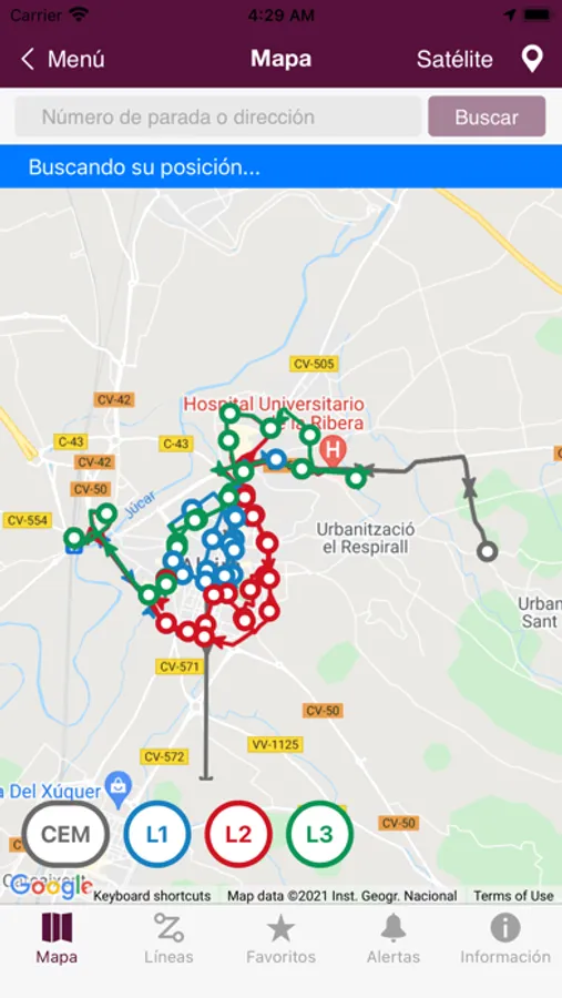 — Ver toda la información detallada de las rutas y las paradas más cercanas a tu posición en el mapa.