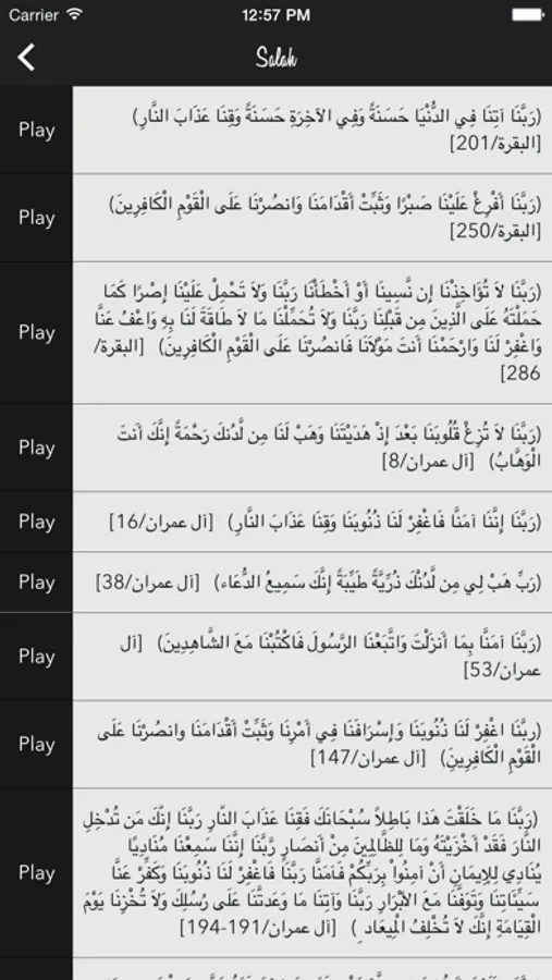 The Salah app also provides you with a selection of Dua's which you can listen to in the original Arabic accompanied with an English translation of each.