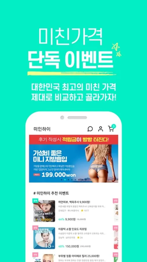 - 미인하이 에서는 최저가 시술 및 이벤트 정보를 확인할 수 있어요