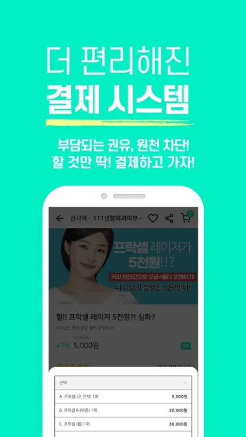 - 앱에서 결제 후 방문시 불필요한 권유는 원격차단! 결제한 시술만 받고 와요