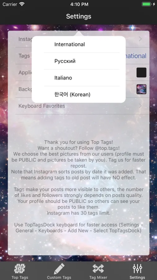 Want to tag your Instagram pictures instantly to get more Likes and Followers? Then try Top Tags keyboard (TopTagsDock)! It's the most effective way to hashtag your posts on Instagram from keyboard.