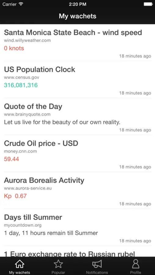 - watch temperature, weather, headlines in the news portal, price of goods, stock price