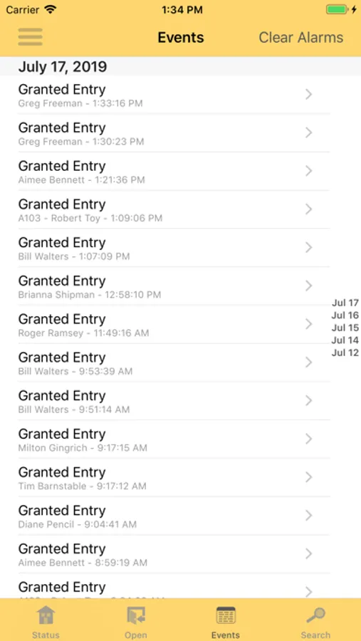 -View current or historical site activity for a tenant or a storage unit