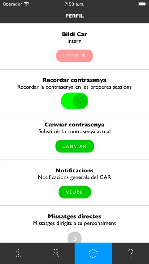 Permet estar al corrent de totes les novetats del centre, així com veure a través del calendari les planificacions esportives, reunions i formacions.
