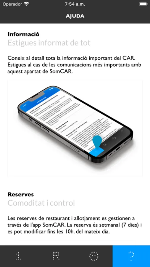 També permet fer les reserves del centre, tant els apats com per quedar-se a dormir.