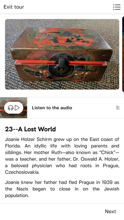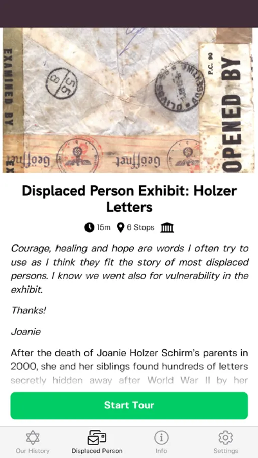 This 45-minute mobile tour guides visitors through the past while bringing its lessons to the present. The exhibit begins with life before the rise of the Nazi Party and continues through the escalating persecution of Jews and the destruction of war, to the poignant moments of liberation and survival. It reveals the cruelty of the Holocaust, but also the resiliency of survivors and the moral courage of resistors and rescuers. Consisting of both narration and recorded interviews, the tour includes Tess Wise, one of the Center’s founders as well as a survivor; Nadav Weil, a 14-year old student of the school and living embodiment of the Center’s legacy; and Mitchell Bloomer, a teacher, storyteller, and witness for future generations. Available in English and Spanish.