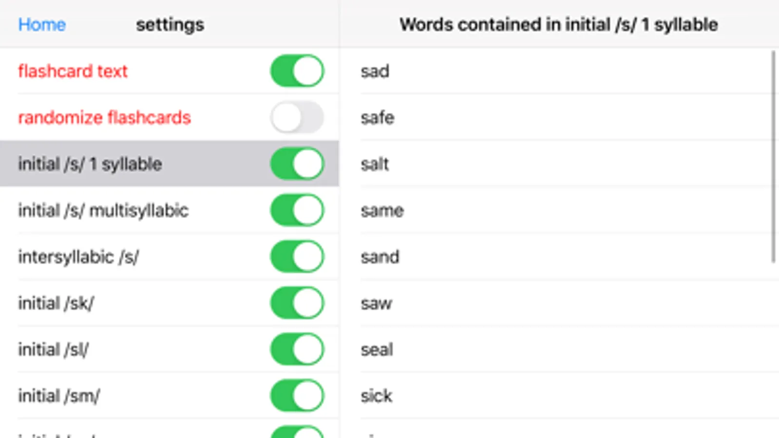 The app consists of 145 images with optional spoken words and text, providing “s” practice through auditory bombardment or flashcard drilling. A fun and visually appealing matching game keeps users motivated to practice their articulation while they play.
