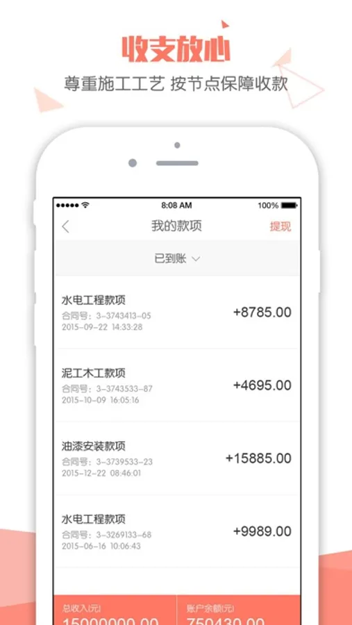 3.【项目结款】按施工节点向用户发起结算,省事放心。