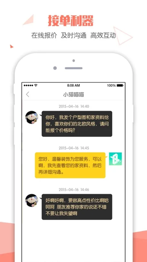 1.【在线接单】业主集客系统和在线聊天系统保证您的客户源源不断。