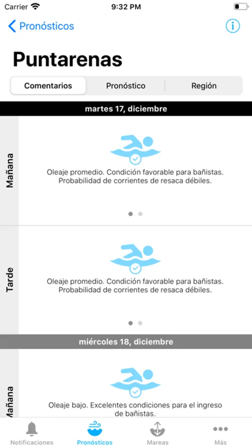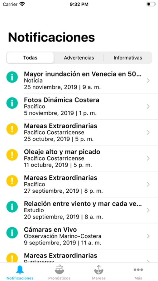 Esta aplicación le permite recibir advertencias de las condiciones del estado del mar en las costas de Costa Rica. Se realizan pronósticos de viento, altura, período y dirección del oleaje, temperatura superficial del mar y corrientes marinas, tanto en el Pacífico como Caribe de Costa Rica, con comentarios que emiten mensajes de precaución para bañistas, corrientes de resaca y navegación de embarcaciones. Además puede consultar las predicciones de las mareas en las principales regiones costeras de Costa Rica. Adicionalmente, puede recibir notificaciones informativas que consisten en noticias relevantes, definiciones, consejos útiles ante emergencias e informaciones generales.