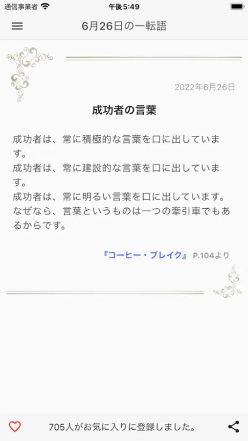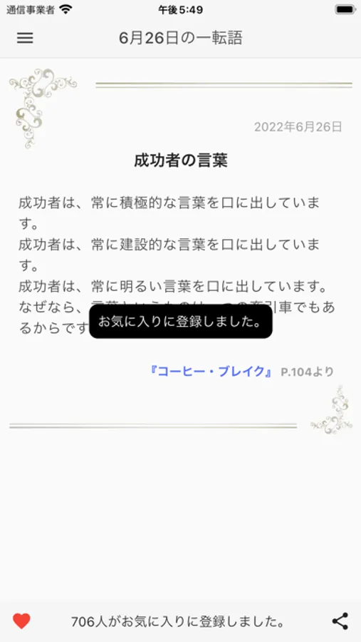 「いいな」と思った格言は、すぐにお気に入り登録。感動した言葉は、繰り返し読むことで、あなた自身のものとなります。