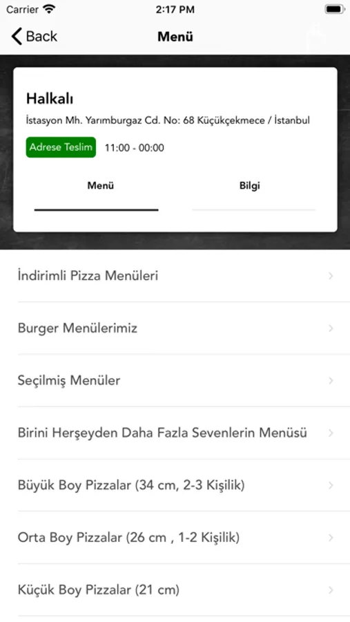 * Menümüzü inceleyin.