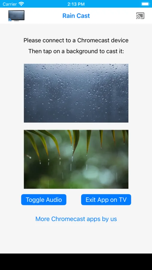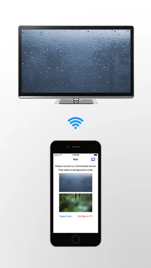You can see relaxing rain scenes (with audio) as the live background for your TV (that has a connected Chromecast device). You can select the background with your iPhone or iPad.