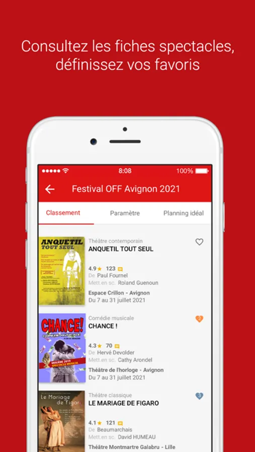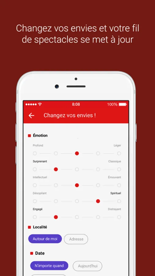 Amateurs de sorties culturelles, cette application organise les spectacles selon vos envies. Idéale pour s’y retrouver dans toutes les sorties possibles et trouver le « bon spectacle », celui qui correspond à votre appétit du moment, aux émotions que vous souhaitez ressentir.