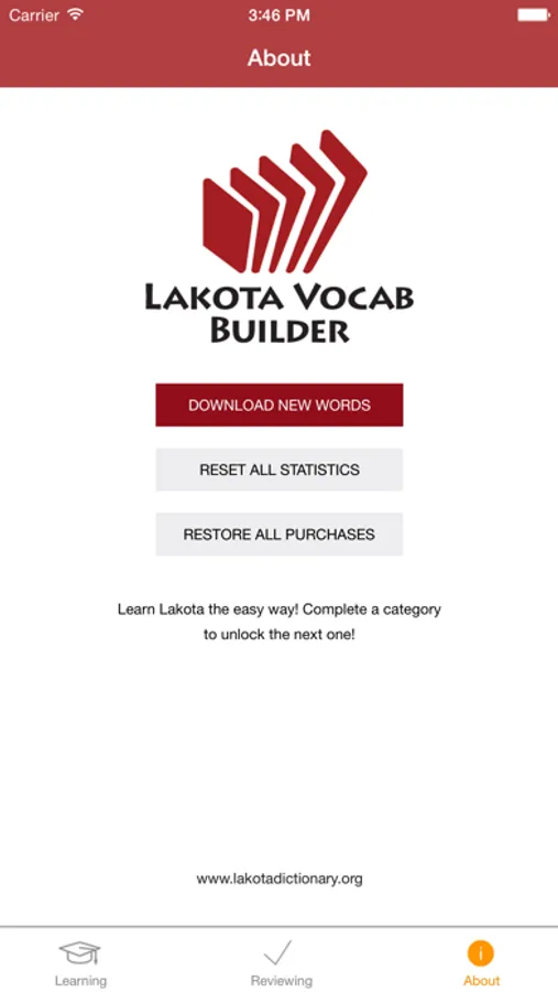 After downloading and opening the app, choose ‘Download New Words’ to get started on learning Lakota vocab!