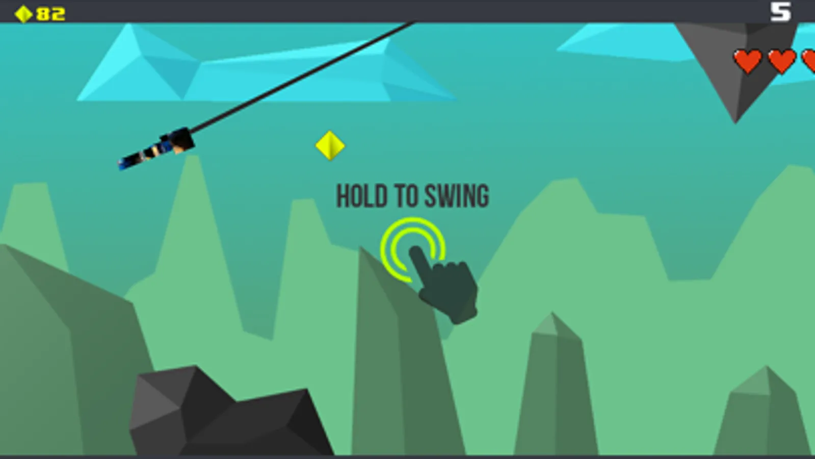 Swinging Game Hook with simple controls: Just tap the screen to extend the rope.