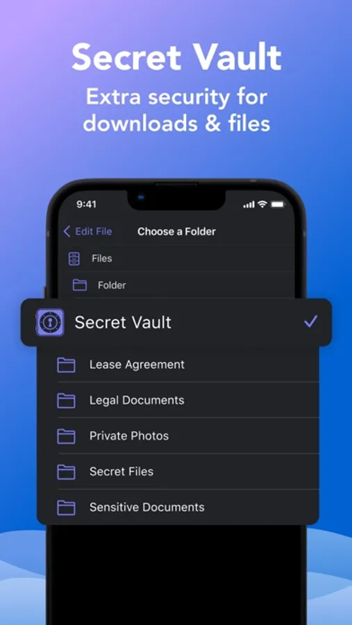 Exclusive ‘Secret Vault’ feature allows you to stash private files & downloads in a hidden folder, accessible only by you.