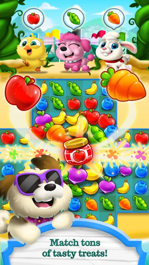 - Match tasty treats to feed your furry friends! Give each animal their favorite snacks to fill their tummies and send them scampering off with gladness. Journey through levels to progress across a huge world map!