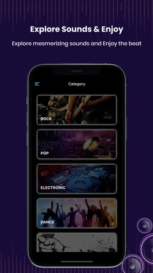 You can choose any Category and can experience best Rock, Electronics, POP, Dance, Hiphop to play different drum beats You will find many drum class patterns in different categories. Once you Tap and start any tone or beat it will play it continuously, until you again tap on it and stop it.