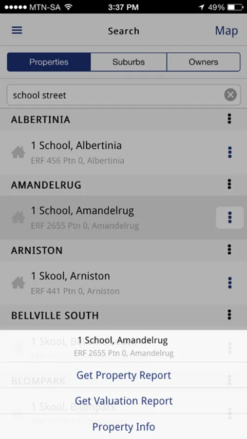 · A property report: this report assists in providing all relevant information on a particular property. It will help subscribers understand the value and history of a property. The report includes last sale date, last sale price, land size, owner information, municipal valuation and monthly rates, bond details and transfer history. The interactive comparable sales table offers subscribers the ability to easily select properties that are most applicable, list and compare the most recent sales to accurately determine a value on a property.