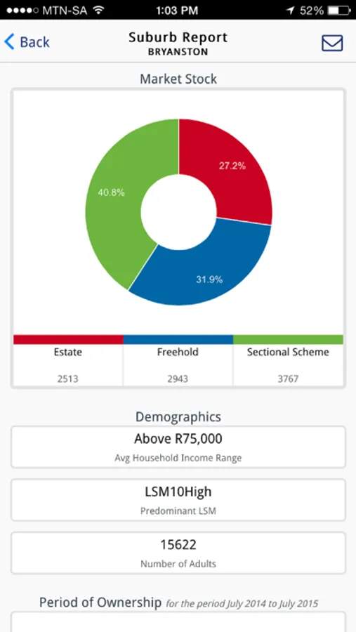 · A suburb report: this report is designed to assist estate agents by arming them with knowledge on the suburb they are operating within. It is also useful to show buyers interested in purchasing in a particular area. The report contains information on market stock, demographic information, periods of ownership, age of residents, property transfer information, growth and activity and lending institutions activity within the suburb.