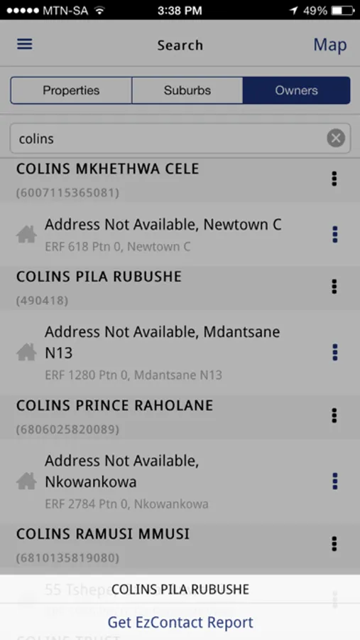 Furthermore any reports drawn using the app will be automatically available should you login from your desktop. Property and suburb reports are inclusive reports and will count towards the number of inclusive reports available according to your subscription choice. EzContact and valuation reports will be billed to your account as additional reports on a cost per report basis. Costs and subscription options are available on our website – www.lightstoneproperty.co.za